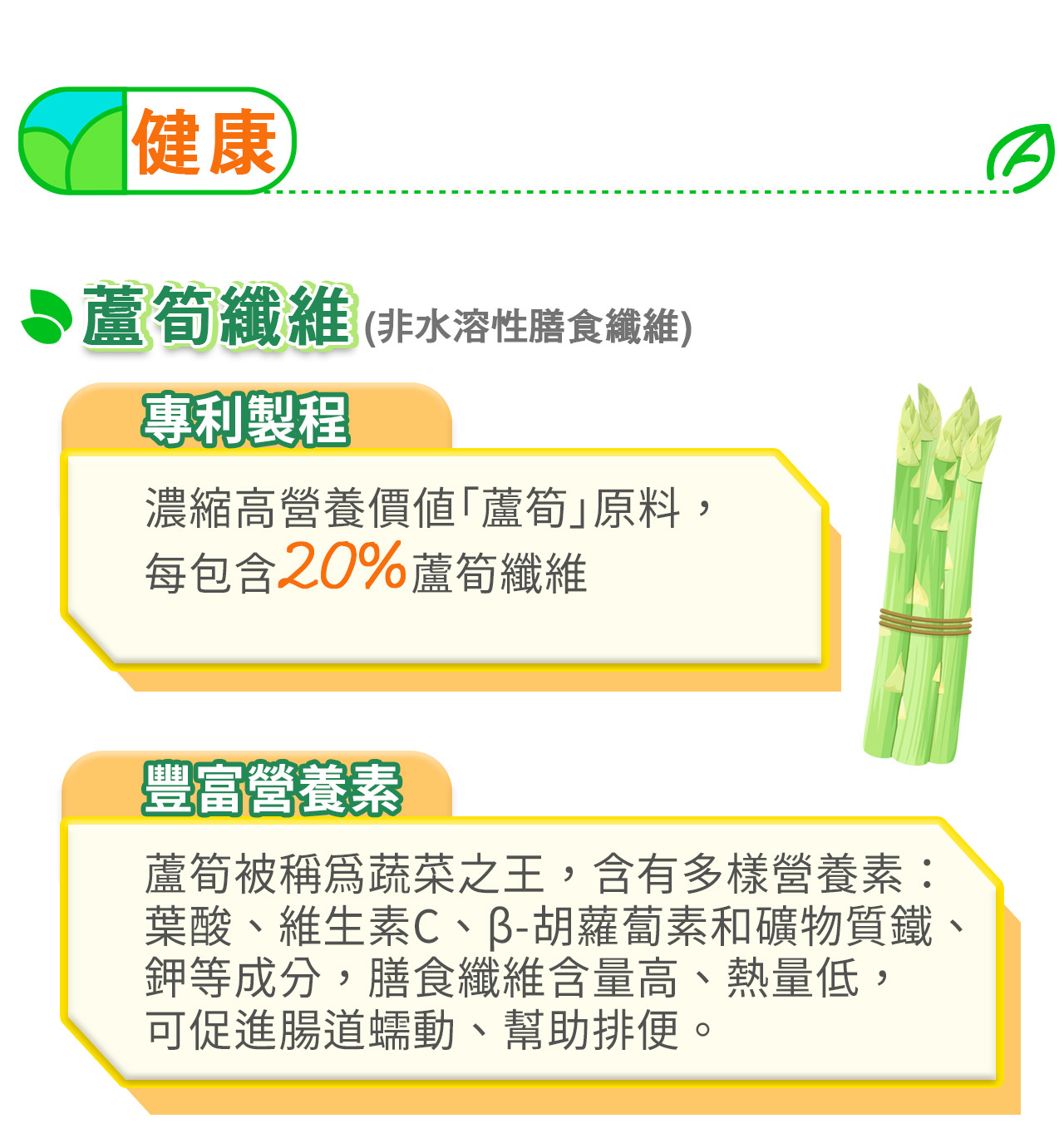 ▎嚴選專利蘆筍非水溶性膳食纖維