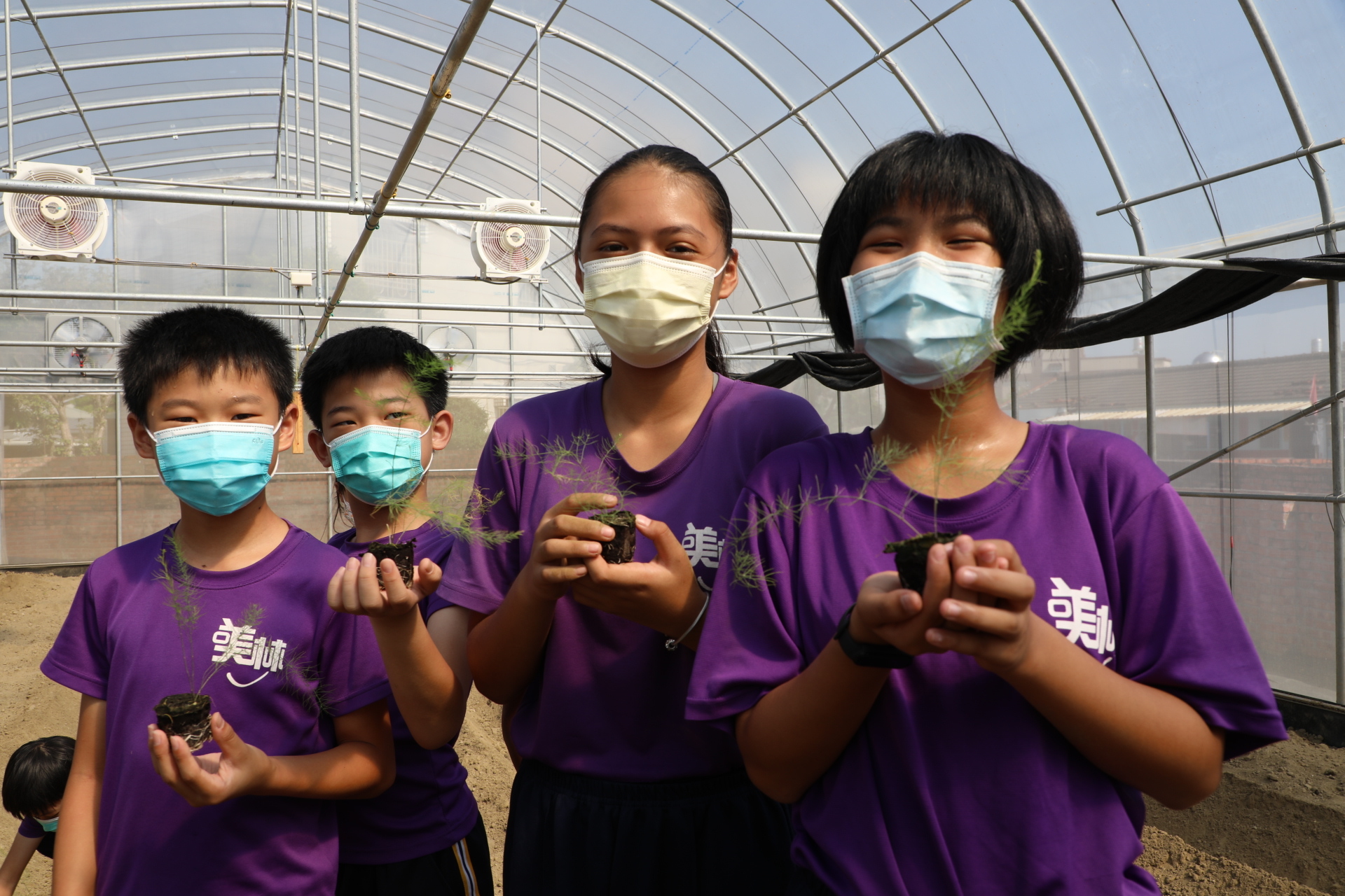 蘆筍在溪口鄉曾經是外銷全世界的農產霸業,早期,在適合種蘆筍的沃土上,無論是新鮮或加工蘆筍,溪口產量一直是嘉義縣最大宗,也造就溪口蘆筍農業蓬勃,歷經多年,台灣從盛產期年產量1萬七千公噸到現在不到2千公噸,農業生產面積遽減,生長在溪口崙尾的在地人陳梧桐,帶著赤忱為家鄉的心,創建崙禾美地創生協會,建構了溫室培育蘆筍品種幼株之外,更是招集溪口校區的學校學生,進入親手栽植蘆筍,培育創生蘆筍的人才幼苗。