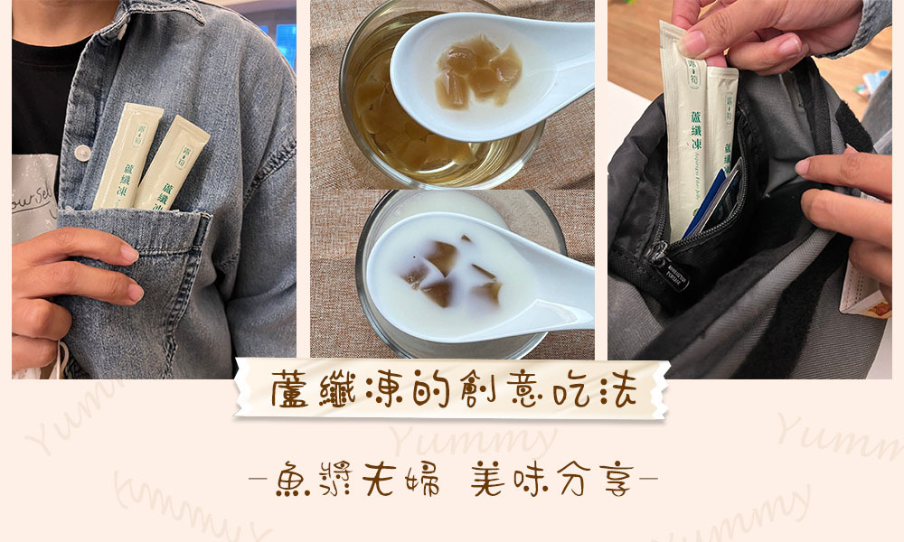 狂吃太罪惡又久坐少運動真的是助長肉肉生成的壞習慣,但不吃會好餓,吃了又更罪惡,烤肉當然多吃肉少吃菜,營養難平衡,無法相信自己意志力的我,只好相信蘆纖凍了。